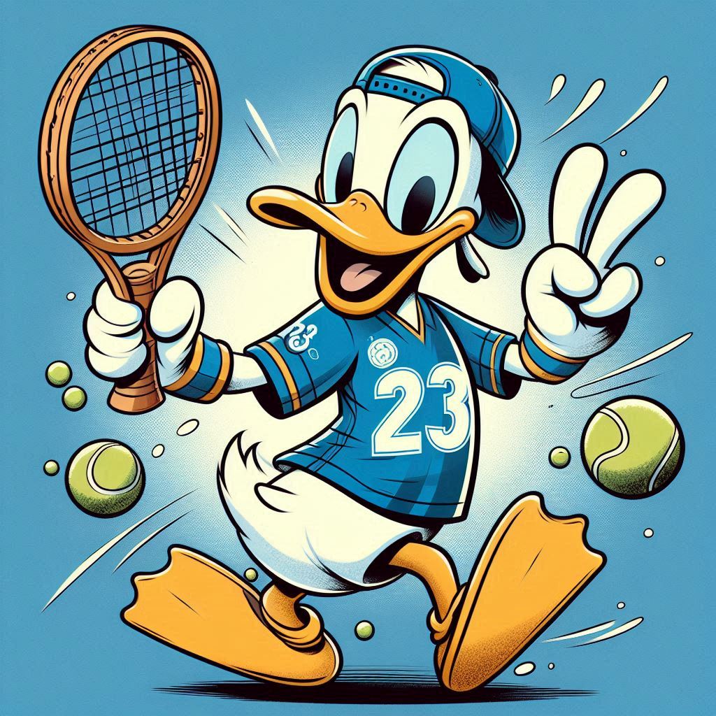 Donald Duck playing tennis.